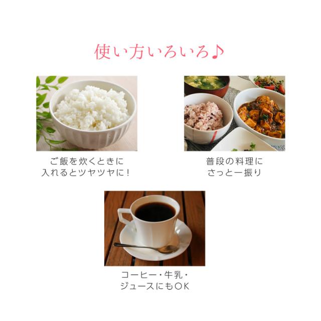 1日5〜10gを目安にコーヒー、ジュース、牛乳などのお好きな飲み物に溶かして飲んだり、ヨーグルトに混ぜてお召し上がり下さい。