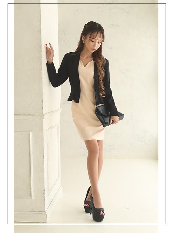 ☆ミディ丈のワンピースとジャケットのセットアップ、上品でスタイリッシュなキャバスーツ。
