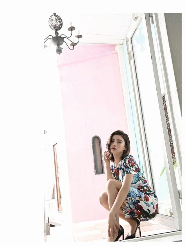☆花柄が上品な韓国キャバワンピース。ラウンドネックと膝丈デザインで大人の女性らしい清楚な印象を演出します。