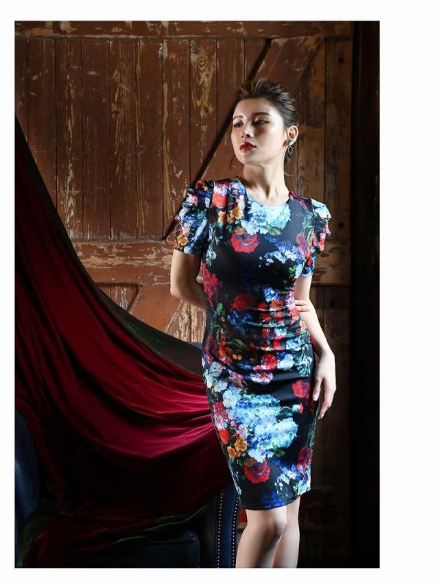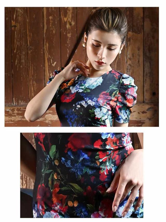 キャバ ワンピース ワンピ キャバワンピース キャバワンピ レディース パーティードレス DaysPiece 花柄 膝丈 ラウン