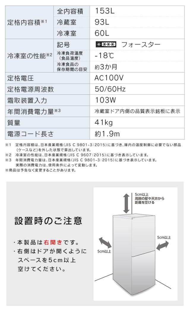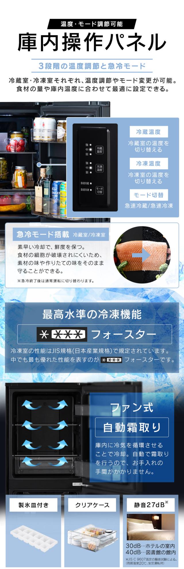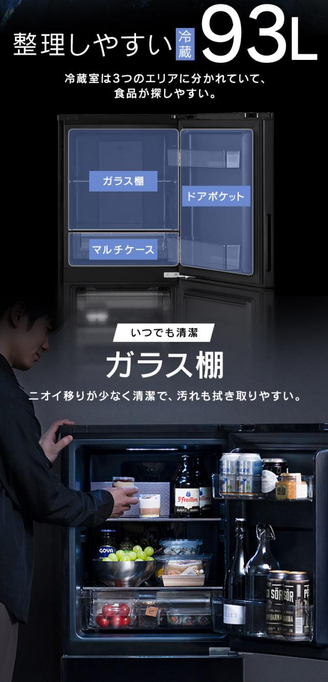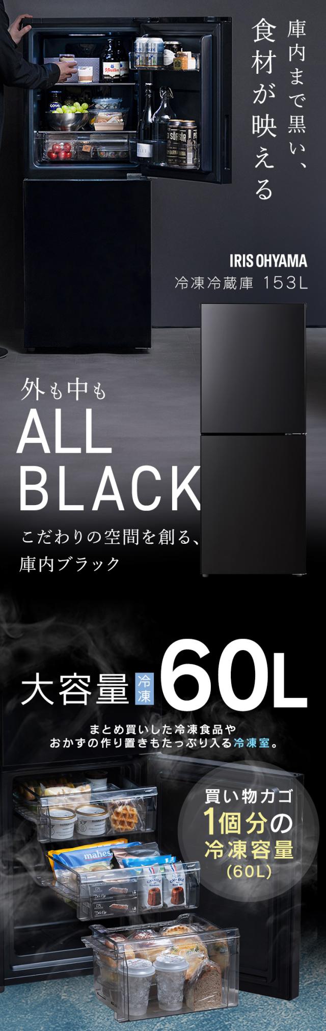 外も中も ALL BLACK、冷凍冷蔵庫/153L。