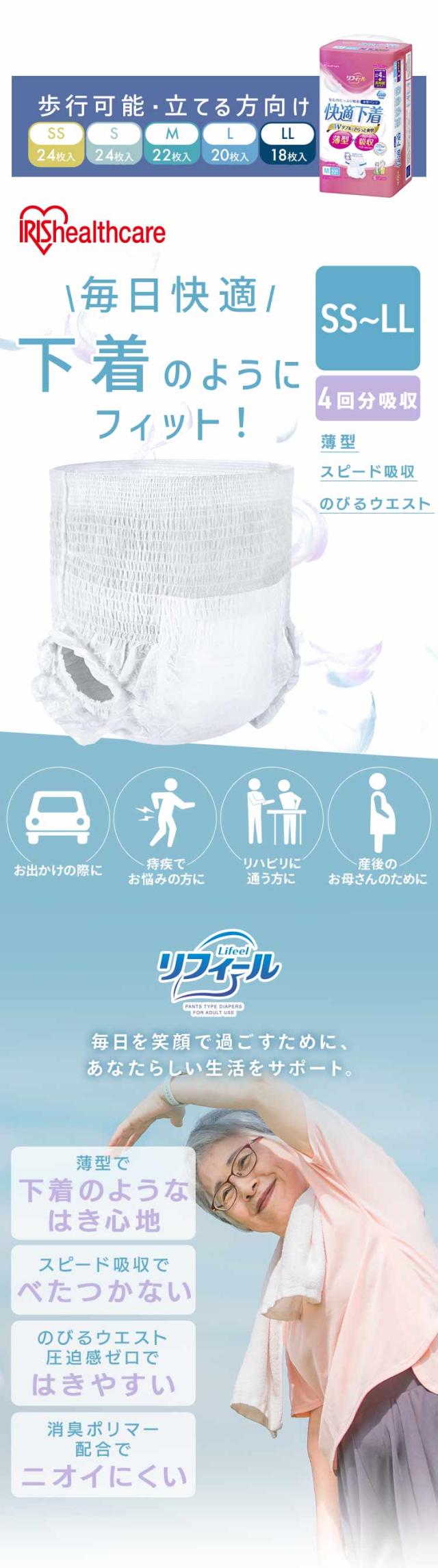 [検索用:大人用おむつ パンツタイプ 薄型 長時間 SS S M L LL 4回吸収 吸収量 多い 消臭 紙パンツ リハビリ 旅行 男性 女性 快適下着 リフィール アイリスオーヤマ 4967576769006 4967576769013 4967576769020 4967576769037 4967576769044]