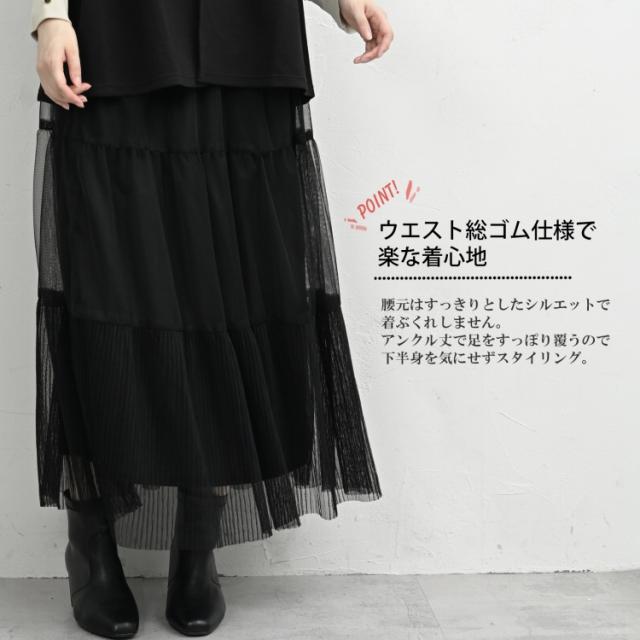 女性らしい華やかなチュールティアードスカート。 XXXXL 2XL 3XL 4XL ロング丈スカート ゆったりサイズ ぽっちゃり女子 プラスサイズ 大きいサイズ レディース ロング丈スカート チュールスカート ティアードスカート ロングスカート Aラインスカート ウエストゴム ロング丈 アンクル丈 ミモレ丈 10分丈 9分丈 8分丈 春服 秋服 春物 秋物 春スカート 秋スカート エアリー ふんわり シアー感 透け感 切り替え 裏地あり 体型カバー 下半身カバー 細見え 美シルエット 脚長効果 大人 カジュアル ナチュラル フェミニン 上品 クラシカル ガーリー おしゃれ きれいめ かわいい かっこいい 着こなし コーデ 定番 春コーデ 秋コーデ ファッション 大きめ 女性 婦人用 ミセス 30代 40代 50代 2025 春新作 春 秋 黒 M LL 3L 4L 5L 9号 13号 15号 17号 19号 cam-sa-bt0490