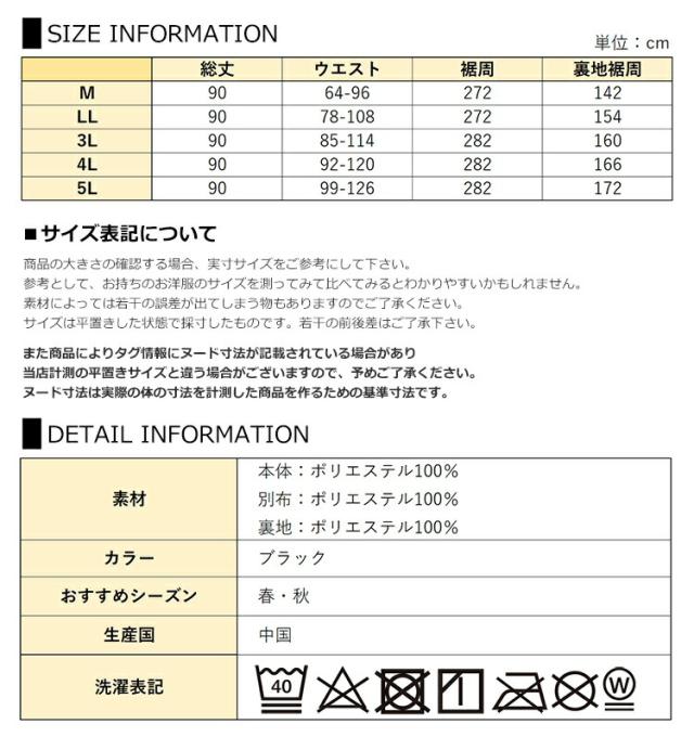 M:総丈90 ウエスト64-96 裾周272 裏地裾周142