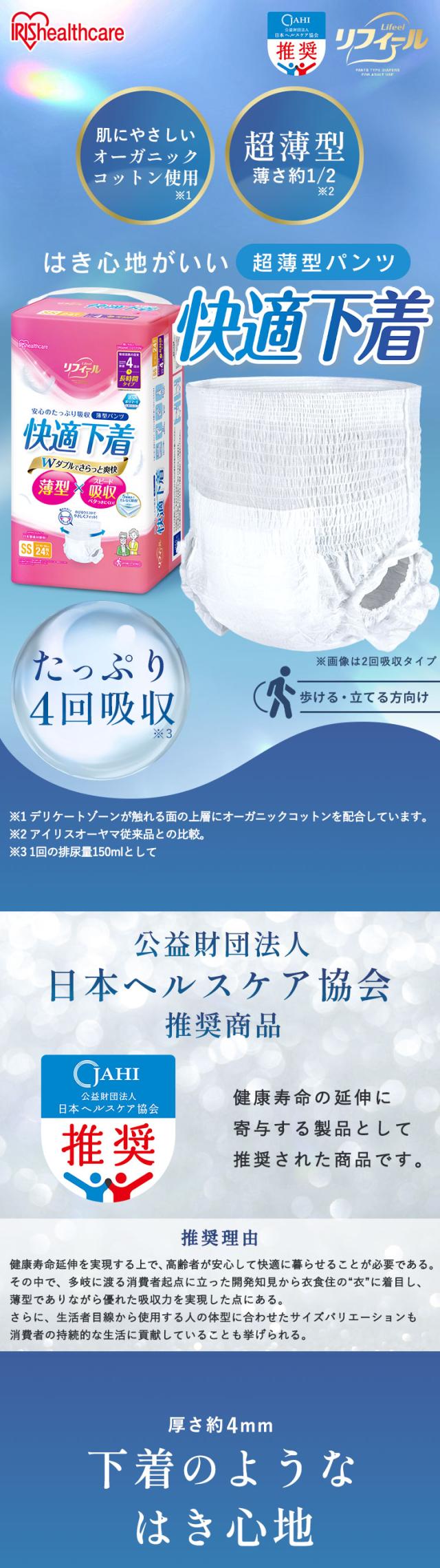 大人用おむつ パンツタイプ アイリスオーヤマ リフィール 薄型 長時間 SS S M L LL NAD-4 4回吸収 介護 介護用おむつ 大人用おむつ スピード吸収 消臭 紙パンツ 男性 女性 べたつかない はきやすい においにくい 送料無料【公益財団法人日本ヘルスケア協会推奨商品】