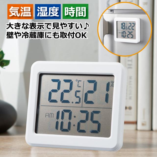 温湿度計 温度計 湿度計 デジタル 時計 置き時計 壁掛け 置き型 磁石 マグネット 冷蔵庫 キッチン シンプル 小さめ コンパクト 家庭用 寝室 ペット 子供部屋 時計 3way 白 ホワイト プレゼント 送料無料 ポイント消化