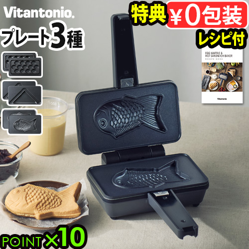 【特典付】ホットサンドメーカー 電気 1枚 エッグワッフルメーカー ビタントニオ エッグワッフル & ホットサンドベーカー [プレート3種 VEH-10-K-P] Vitantonio バブルワッフルメーカー パッフル ポワソン たい焼き 食パン 1枚焼き 送料無料 P10倍