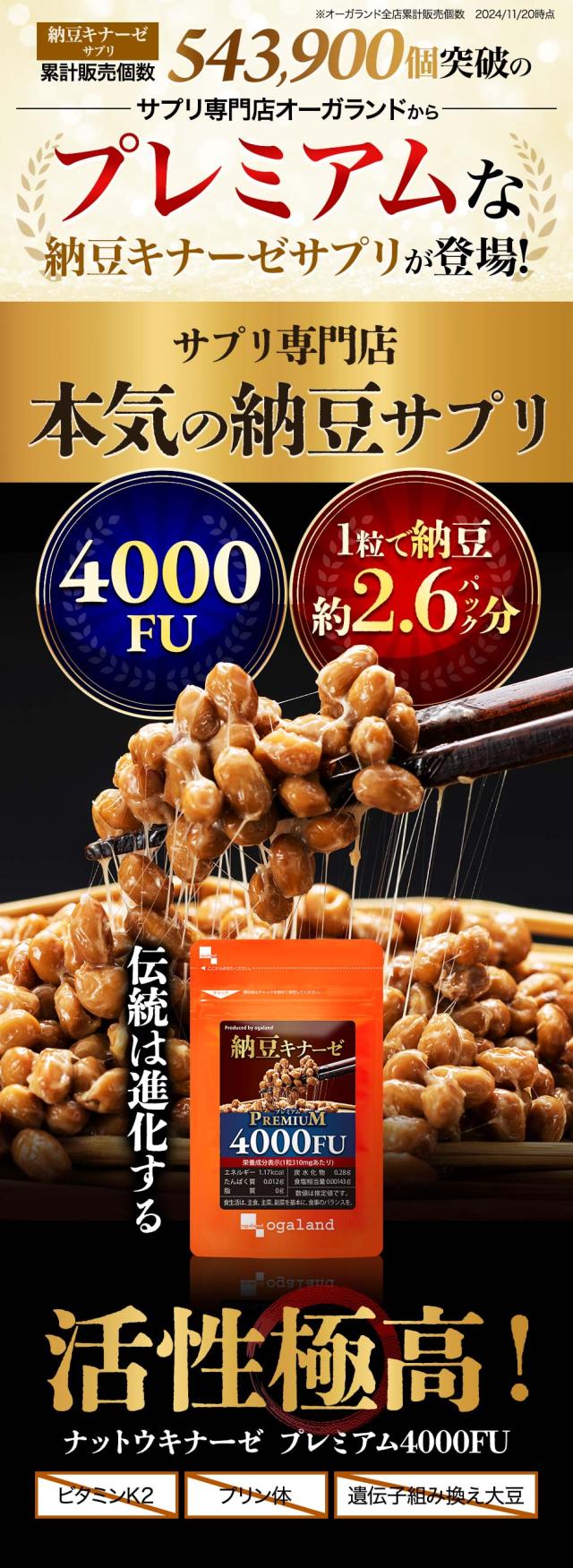 【セール】ナットウキナーゼプレミアム 4000FU (約1ヶ月分) 送料無料 納豆 新商品 納豆菌 オーガランド 納豆キナーゼ ポッキリ お試し プリン体無し 11100