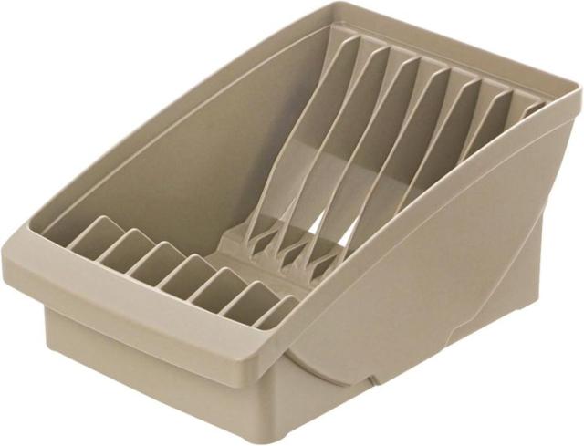【サイズ】14×21×9.5H(cm) 【素材】ポリプロピレン 【生産国】日本 【お手洗い方法】食洗機対応 【対応食器サイズ】直径12〜20cm 【収納可能枚数】6枚 スタイリッシュでおしゃれかつ、きれいな収納を実現する「トトノ」シリーズのディッシュスタンド プラスチック製なので水洗いができ、耐熱温度120度なので食洗機にも対応できます。 【立てて収納】お皿を立てて収納することで見やすく、サッと取り出すことができます。 抗菌加工が施されており清潔さを保ったままお使い頂けます。 「立てる収納」で使いやすく お皿やお椀などの食器類を立てて収納することで目当ての食器が見つけやすくなり、 取り出しや片付けの作業性がアップ。 また、ぱっと見渡せるのでだれが見てもわかりやすく、家事の分担もしやすくなります。 「きちんと自立」が優秀 お皿もお椀も、一つ一つがきちんと自立。お互い同士が干渉しあわないので、出し入れの作業もスムーズです。 また、一枚でも自立するので少ない枚数でお皿が倒れてきてしまう、といった不具合も起こりません。 サイズがそろっているから見た目もスッキリ トトノ独自のサイズ設定で見た目もスッキリ。スタイリッシュな収納空間に。 様々なサイズや形の食器たちの置き場をスマートに整えます。 奥のものも見つけやすい 小皿用のディッシュスタンドやお椀のスタンドは、前後に並べられるデザインになっています。 そのため、後ろ側が少し高くなるように設計し、奥のものが見つけやすいようにしています。 引き出して使いやすい「手掛け部」付き 前面には指を掛けやすい「手掛け部」を設置。 引っ張り出して使えるので奥側の食器を取り出すときに便利です。 ●TOTONO(トトノ)シリーズのお皿を食器棚に収納できるスタイリッシュでおしゃれなディッシュスタンド ●お皿を立てて収納することで見やすく、サッと取り出せる便利なキッチン収納です。 ●直径12〜20cmまでのお皿に対応しており、約14枚を収納することができます。 ●便利な手掛け部があり、食器棚からの取り出しに役立ちます。 ●お皿を立てて置くことにより取り出しやすい利便性はもちろん、外からの見栄えもおしゃれな仕上がりになっています。 ●口に入れるものを盛り付けるお皿の収納だからこそ気を付けたい衛生面も抗菌加工を施しているので、安心してお使い頂けます。 ●プラスチック製なので、ちょっとした汚れならば水洗いで落とすことができ、食洗機対応でお手入れもラクラクです。 ※リニューアルなどによりパッケージなどの仕様が 予告なく変更になる場合がございます。ご了承ください。 |