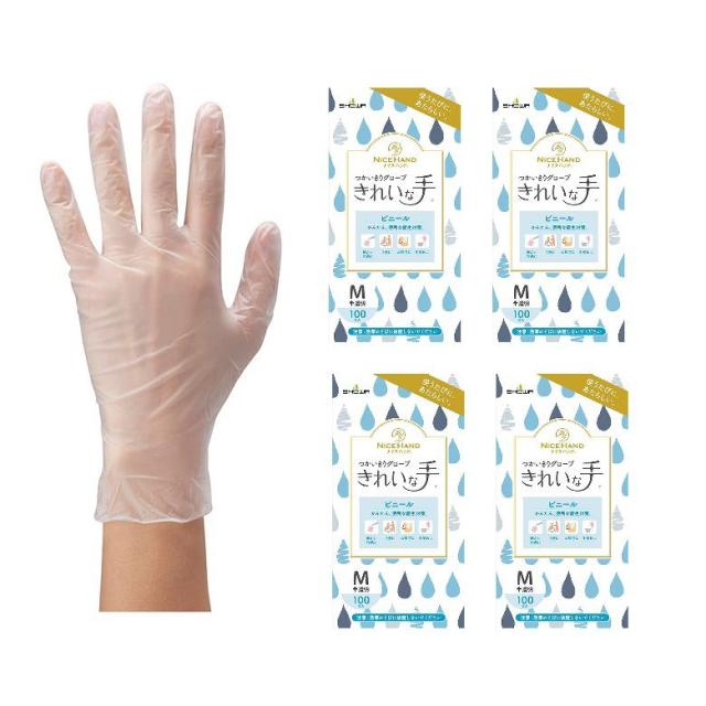 ビニール手袋 ナイスハンドきれいな手 使い切りグローブ ビニール100枚入M 半透明 ×4個セット