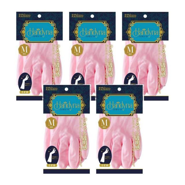 ハンディーナ ビニール手袋 うす手 Mサイズ ピンク 薄手 食器洗い キッチン手袋 1双入 ×5個セット