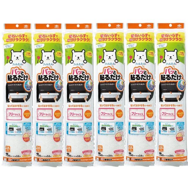 パッと貼るだけ ふんわりフィルター フリーサイズ 3.6m 1枚入 換気扇フィルター ×6個セット