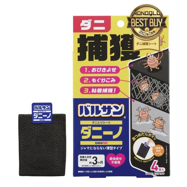 バルサン ダニ捕りシート ダニーノ 4枚入 捕獲したダニごと捨てる H00390 置くだけ フルーツの香り ダニ 捕獲 薄型タイプ ペット 殺虫剤成分不使用 個別包装 ダニ対策 ダニ取り ダニ捕りマット ダニ取りシート 退治 駆除 対策 ダニ捕り シート