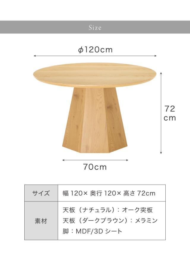 円形ダイニングテーブル 120cm オーク突板 天然木 メラミン シングル脚 リビングテーブル 円形テーブル 食卓 円卓 ダイニング おしゃれ 重厚感 丸テーブル 2人掛け 4人掛け テーブル(代引不可)