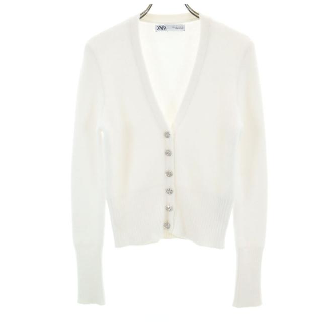 ザラ 長袖 Vネック ニットカーディガン S 白 ZARA レディース