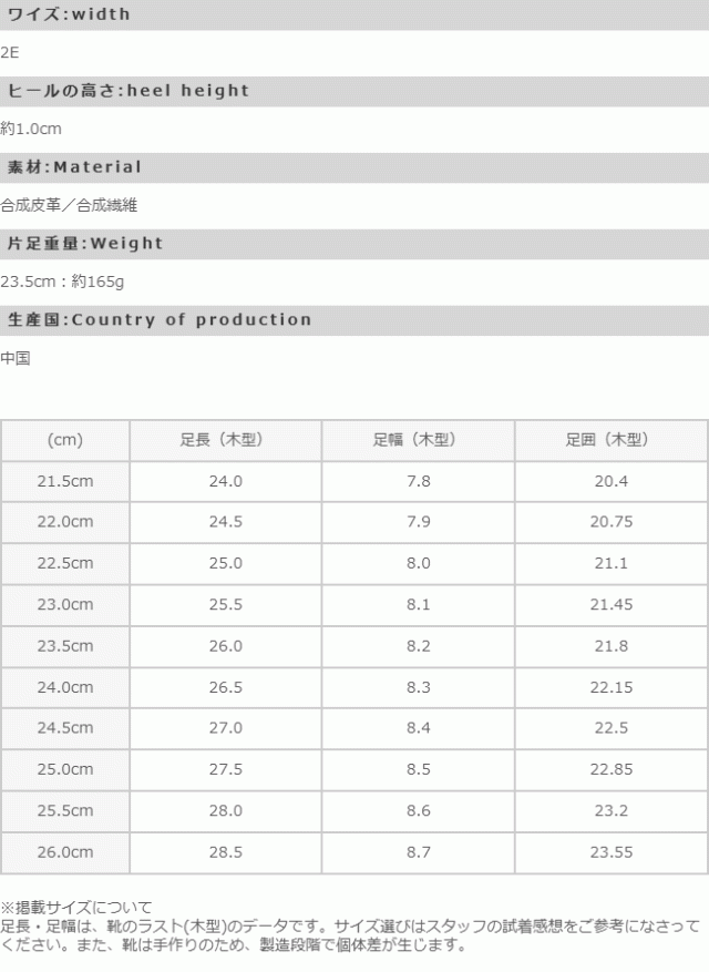 足長(木型):25.5cm/足幅(木型):8.1cm