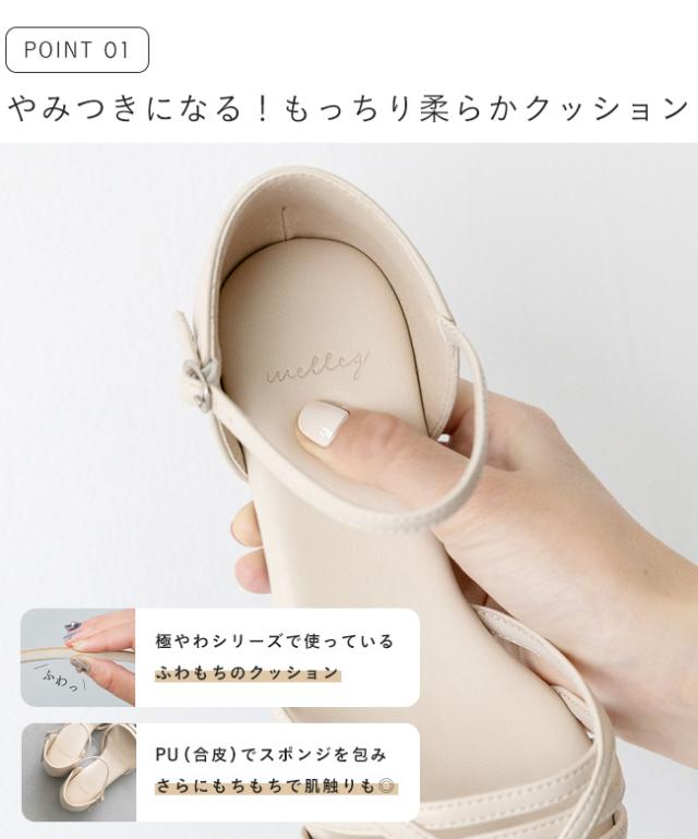 さらに肌触りの良いPU(合成皮革)をプラスすることで、素足が触れた瞬間もっちりとやみつきになる心地よさが足を包みます。