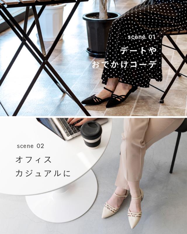 すらりとしたポインテッドトゥと甲の肌見せデザインはファッションのアクセントになり、上品でヘルシーな夏らしい涼しげな印象に。