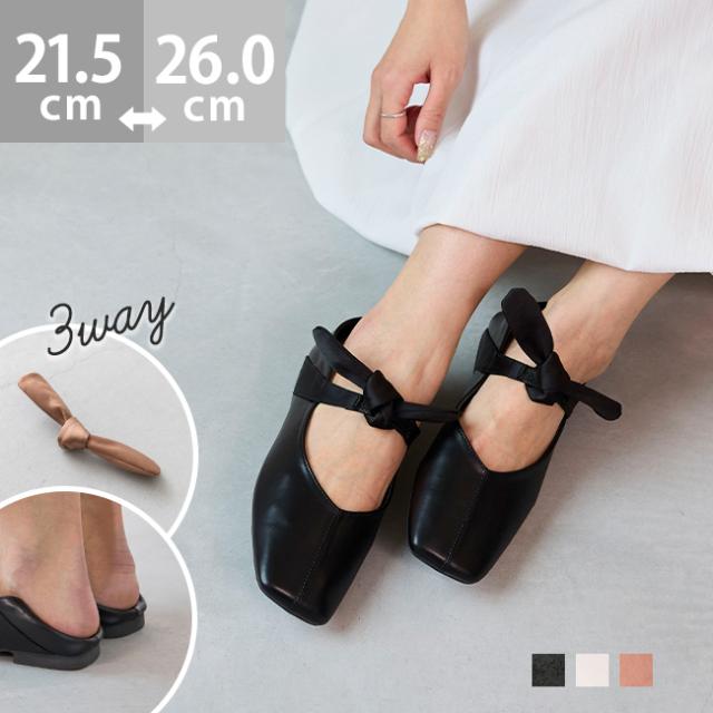 リボンを取り外してもかかとを踏んでも履ける3way!