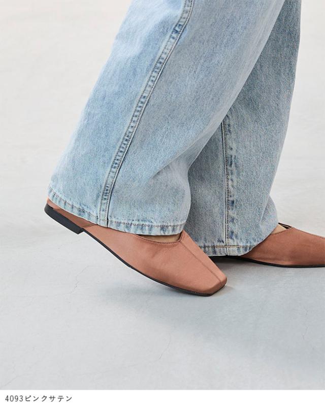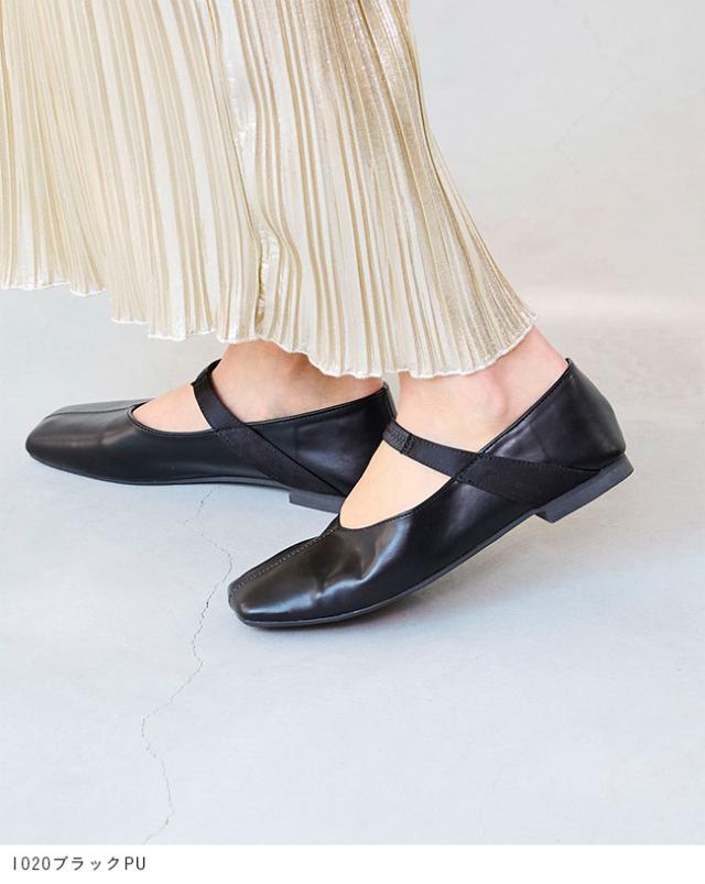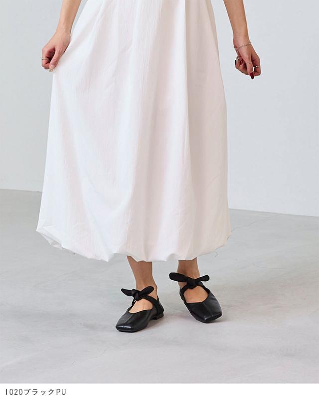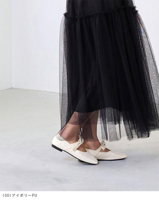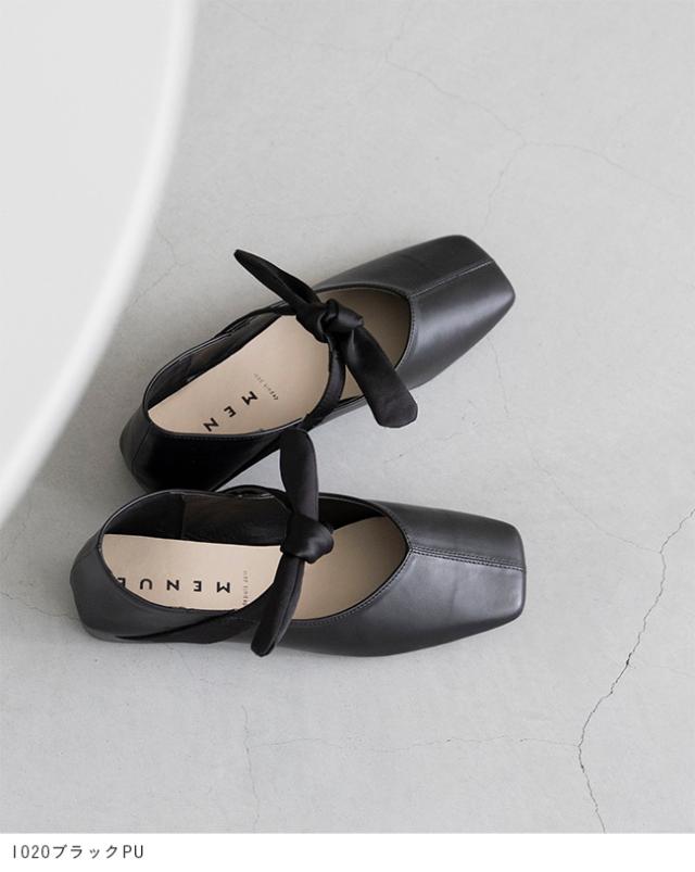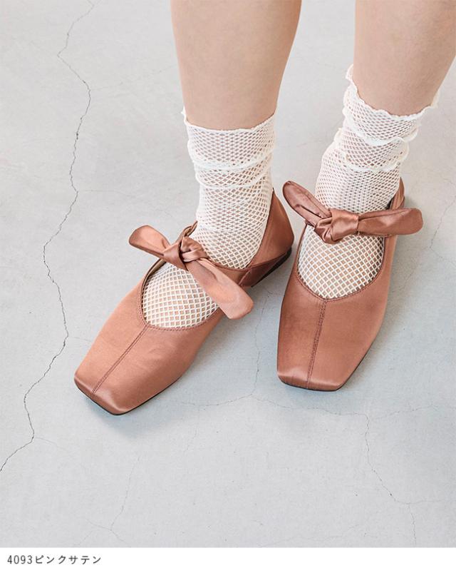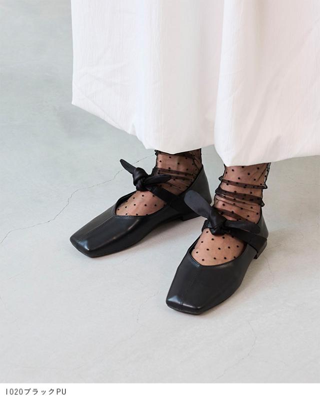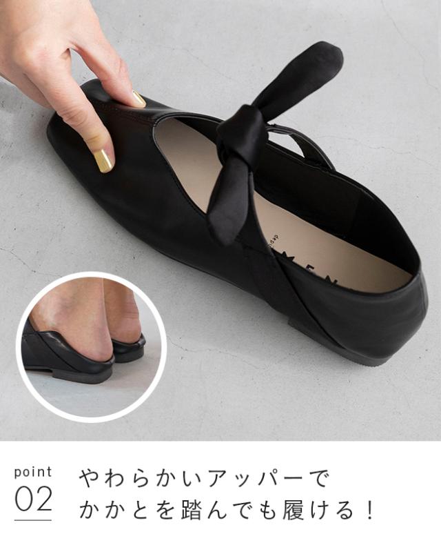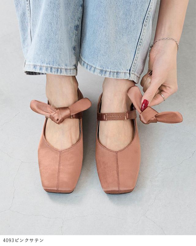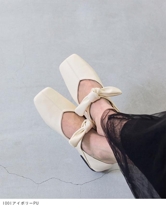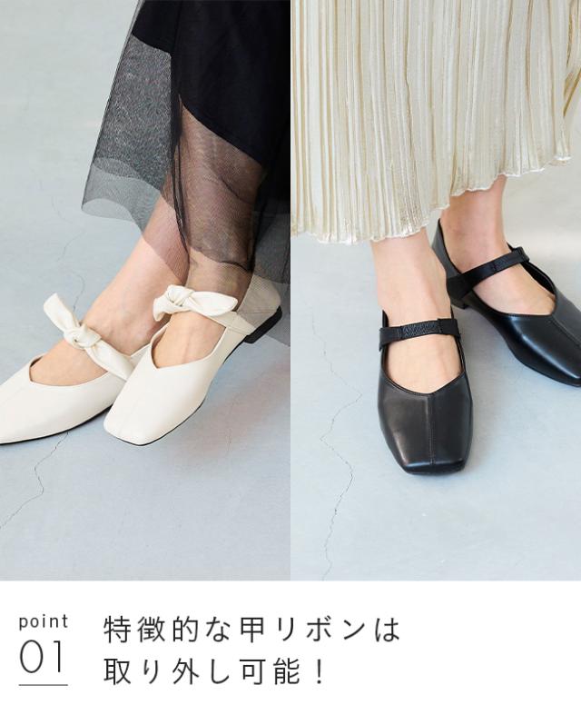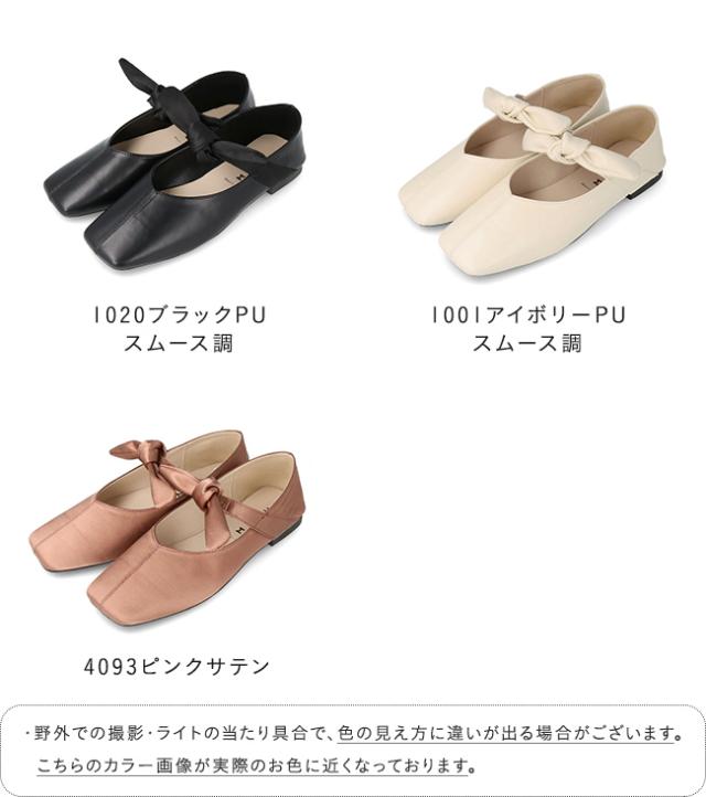 パンプス フラットシューズ 走れるパンプス レディース 歩きやすい スクエアトゥ リボン Vカット ストラップ 送料無料