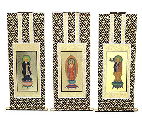 京仏壇はやし 掛軸 仏壇用 みやび 真言宗 50代 3枚セット (紺表装) ◆高さ 28cm 幅 13cm 【 掛け軸 】