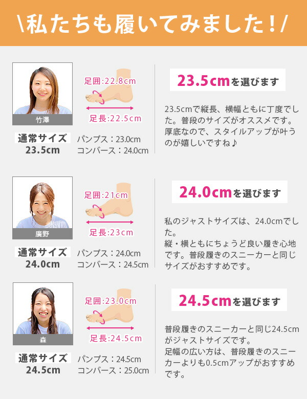 取り扱いサイズ:22.5cm 23cm 23.5cm 24cm 24.5cm
