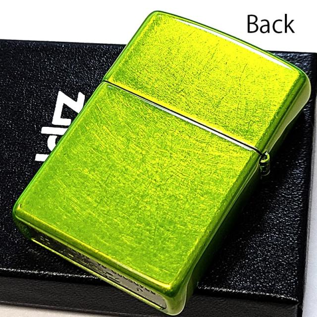 鮮やかなライム色のカラーが目を引くおしゃれなジッポライターです。