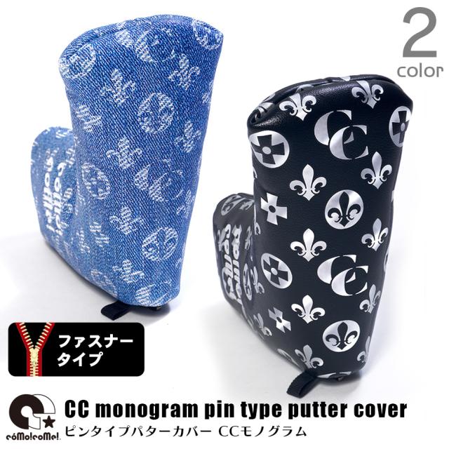 コモコーメ ゴルフ パターカバー シルバー デニムブルー モノグラム ブレードタイプ ピンタイプ L字 ハーフマレット ブレード パター ヘッドカバー ファスナー 仕様 人工皮革 インナーボア クッション 高級 クラブカバー 対応 メンズ レディース