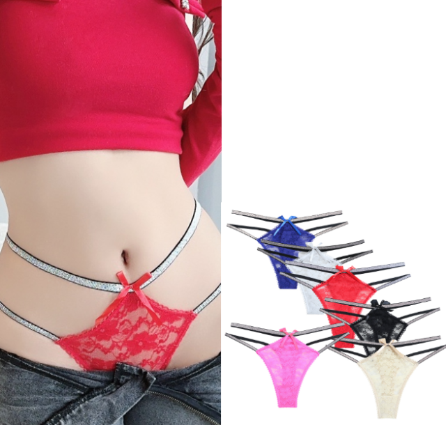 セクシー 2ライン バック リボン ★ レディース ランジェリー ショーツ パンティ パンツ Tパック 可愛い ビキニ 下着 6色 M138-4
