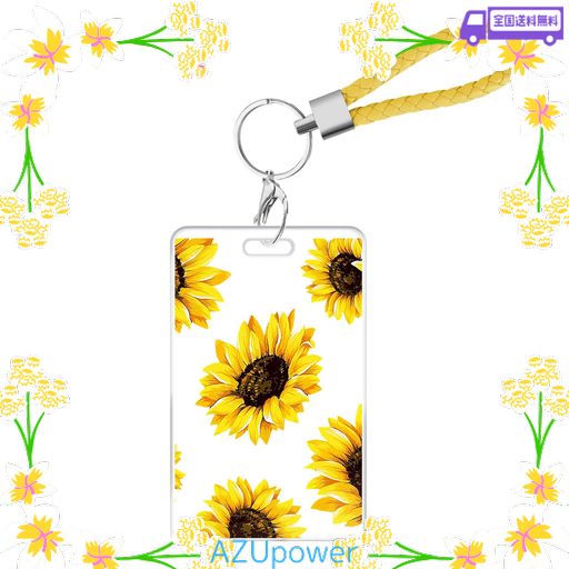 [NEWSEEGO] パスケース 定期入れ かわいい レディース ICカードケース スライドカバー設計 薄型 縦型 キーホルダ付き ストラップ付き 社員証 ICカード 通勤 通学 花柄 両面透明