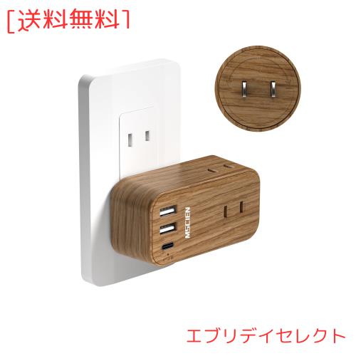MSCIEN 電源タップ コンセント USB付き タイプC 木目 回転 3個AC差込口 1個USB-Cポート 2個USB-Aポート たこあしコンセント 向き変換 分