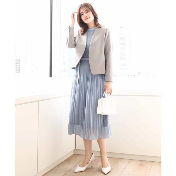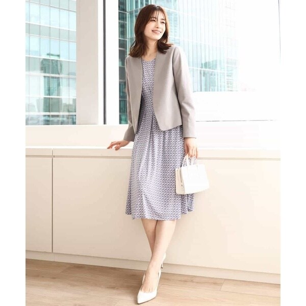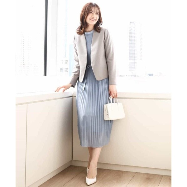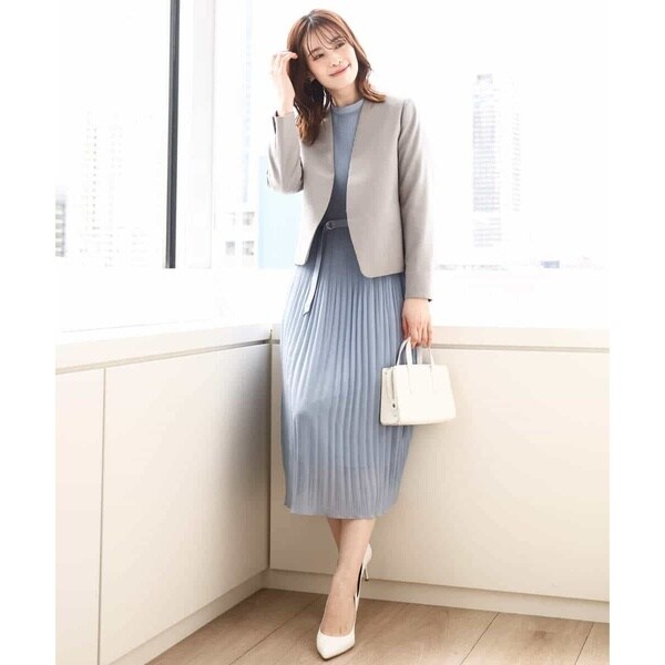 同素材でテーラードジャケット、スカート、パンツもご用意しており、スーツセットアップとして着用可能。カラーも使い勝手のいいネイビーとグレーの2色展開。毎日のお仕事着におすすめなスーツです。
