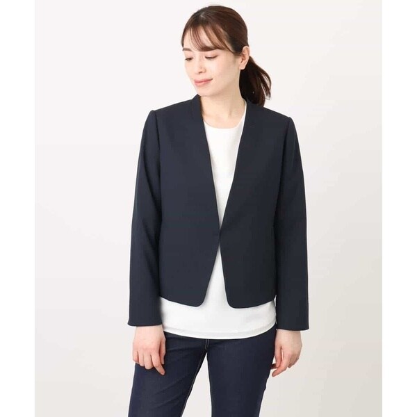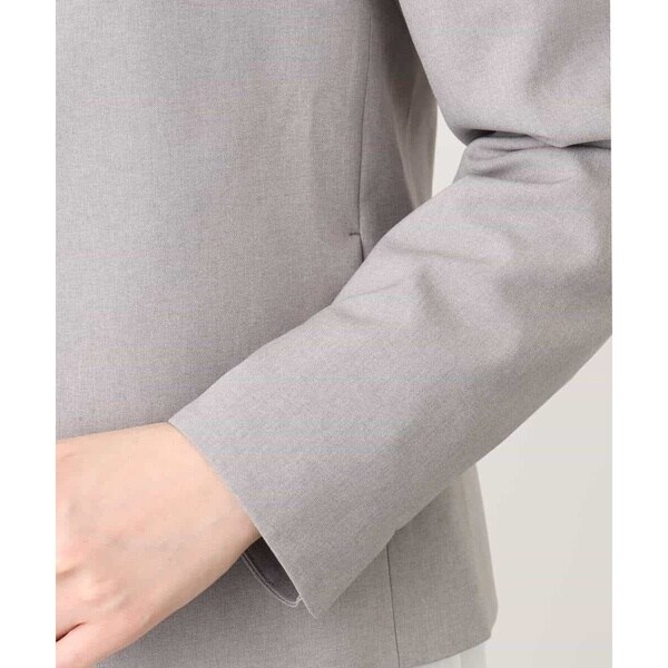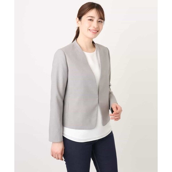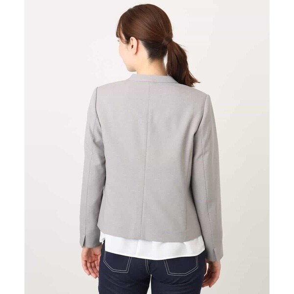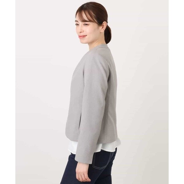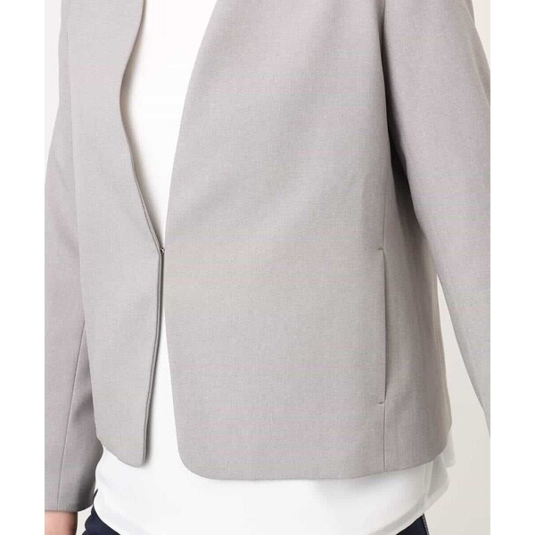 適度に首に沿った衿ぐりがすっきりとした印象のカラーレスタイプのジャケット。スタイルアップして見えるよう、切替えなど細かなディティールにこだわりました。トレンド関係なく長く着こなしやすいベーシックデザインです。
