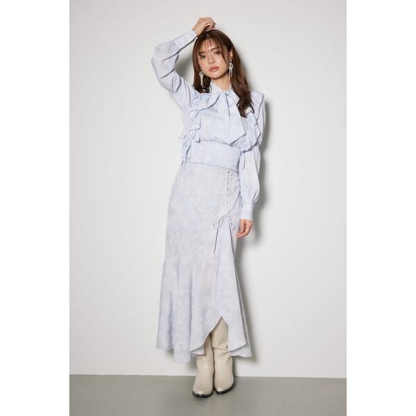 【深スリットで印象的なスタイリングを表現するマーメイドSS−PT】■ポイント左足前に深いスリットとレースアップを入れることでヘルシーさに目を引く、レディーライクなデザインスカート。裾には程よいフレアを展開することで動きが出るようにデザインに。ハイウエストでウエスト周りはすっきりとさせることでスタイルアップ効果を期待できます。■ディテールレースアップの一番下のリボンは取り外し可能なので2WAYで楽しめます。■スタイリング合わせるトップスでリボンの付け外し可能に。同じ柄で作成した(品番:110IS730−0501、2WAYボウタイクロップドBLS)とセットアップで着用して、ワンピ風にスタイリングしても可愛いです。ブラウスはINでもOUTでも、着用可能。■生地透け感:なし裏地:あり伸縮性:なし光沢感:なし厚さ:薄手■商品のお気に入り登録お気に入りアイテムの再入荷・在庫1点などの通知を受け取ることができます。[注意事項]※画像の商品はサンプルです。実際の商品と仕様、加工が若干異なる場合があります。※画像の商品は光の照射や角度、お使いのモニター環境により、実物と色味が異なる場合がございます。※着用、お取り扱いの際は、アテンションタグをご確認ください。