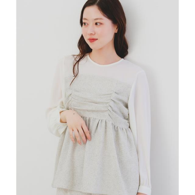ルクールブラン(le.coeur blanc)/ツィードドッキングノーカラーブラウス