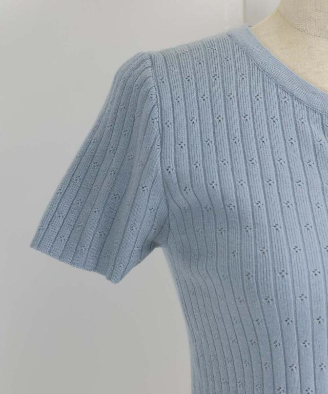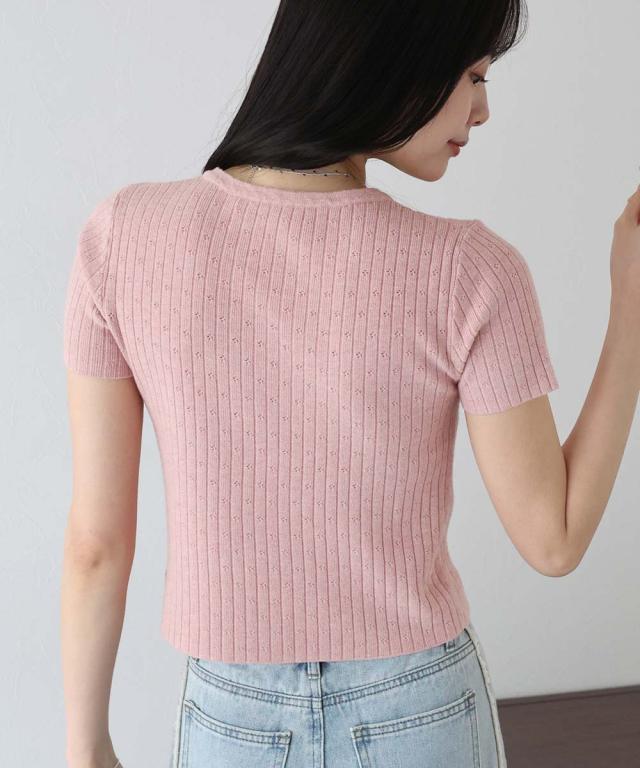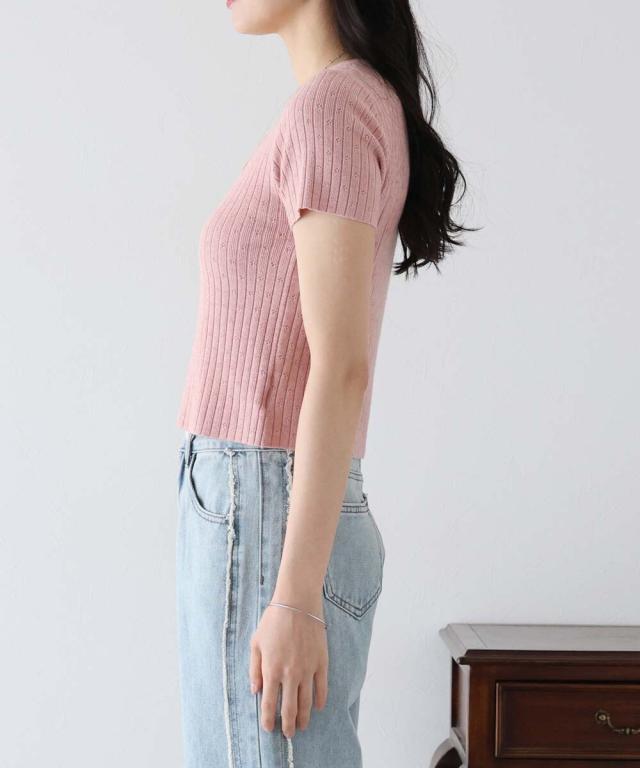 ほのかにあしらったフラワーパンチングデザインが女性らしいカットソー。
