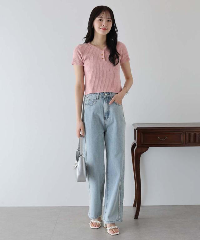 スタイルをよく見せるショート丈なので、ハイウエストのアイテムと合わせるとスタイルアップが出来ておすすめ。