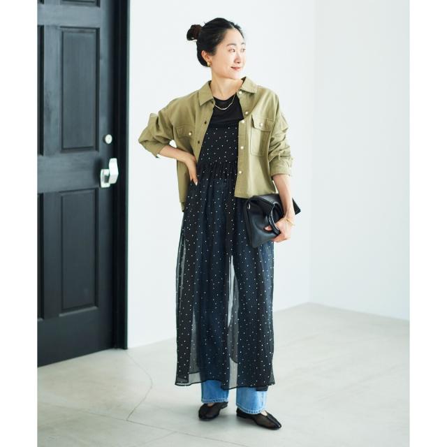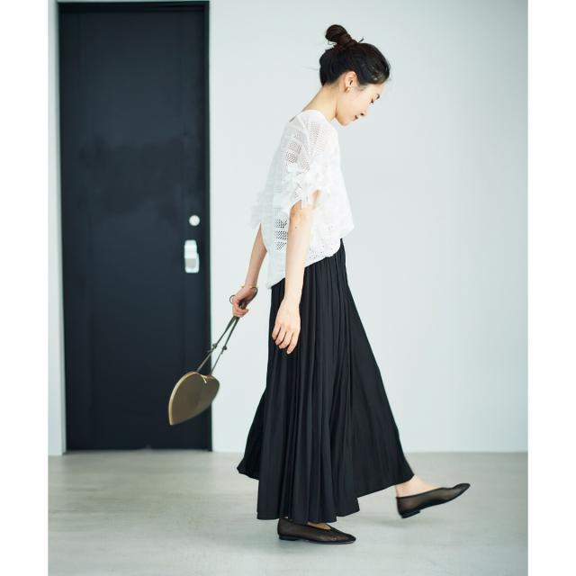 トレンド感のあるメッシュ素材とシアーな質感が、足元に軽やかな印象をプラス。