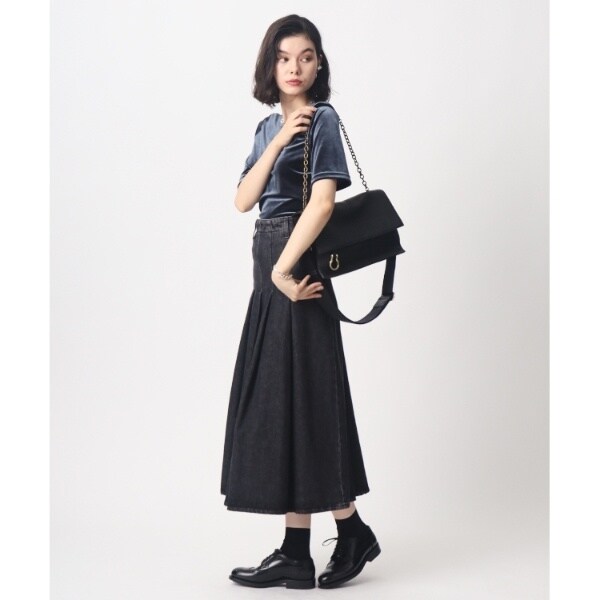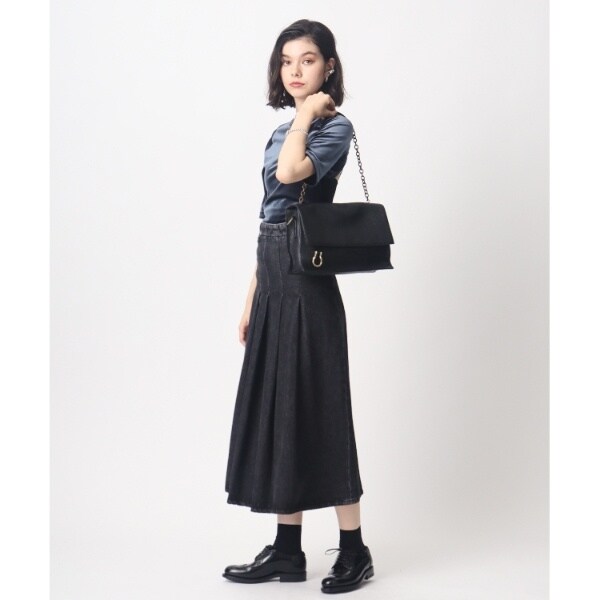 ミディサイズのボディをシンプルなデザインでまとめ、太めショルダーを使うクロスボディ持ちはカジュアルな印象に。