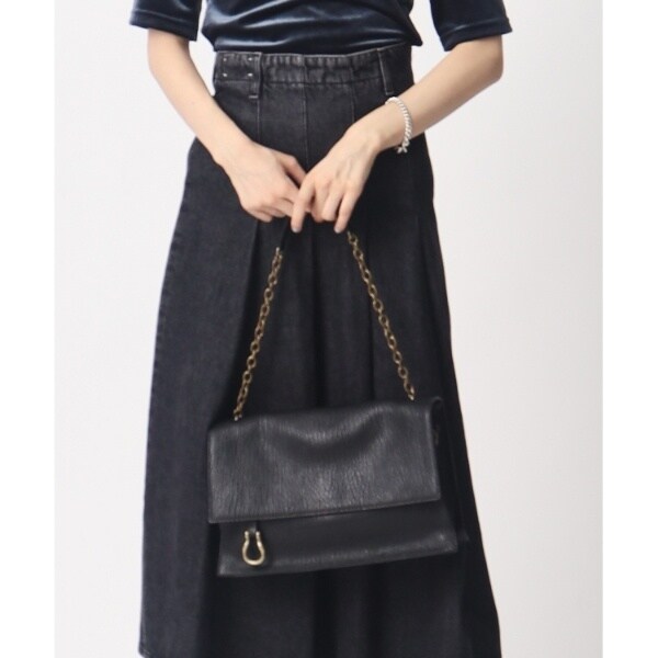 ショルダーを取り外して、大ぶりなチェーンを肩掛けにするスタイルでは上品なワンハンドルバッグに。