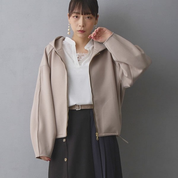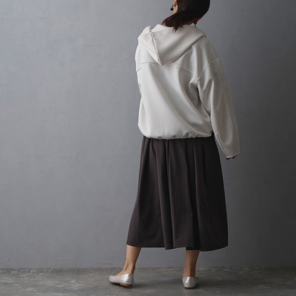 腰回りまである丈感は、ワイドはもちろんタイトパンツやスカートとの相性も◎