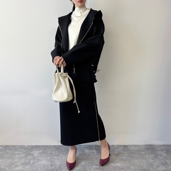 同素材のタイトスカート(メーカー品番:5105−0201)と合わせると統一感のあるセットアップコーデを楽しめます。