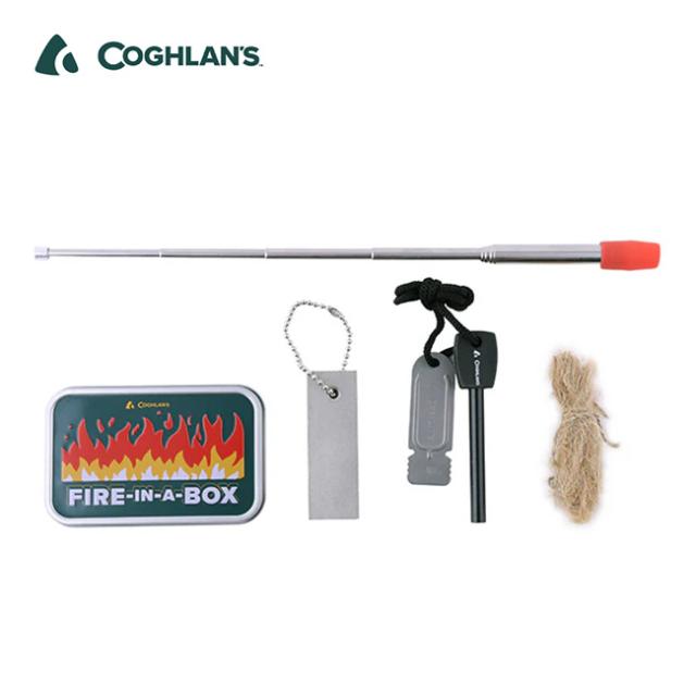 COGHLANS コフラン ファイヤーインアボックスはマッチが無くとも火をおこすことができる火おこし6点セットです。