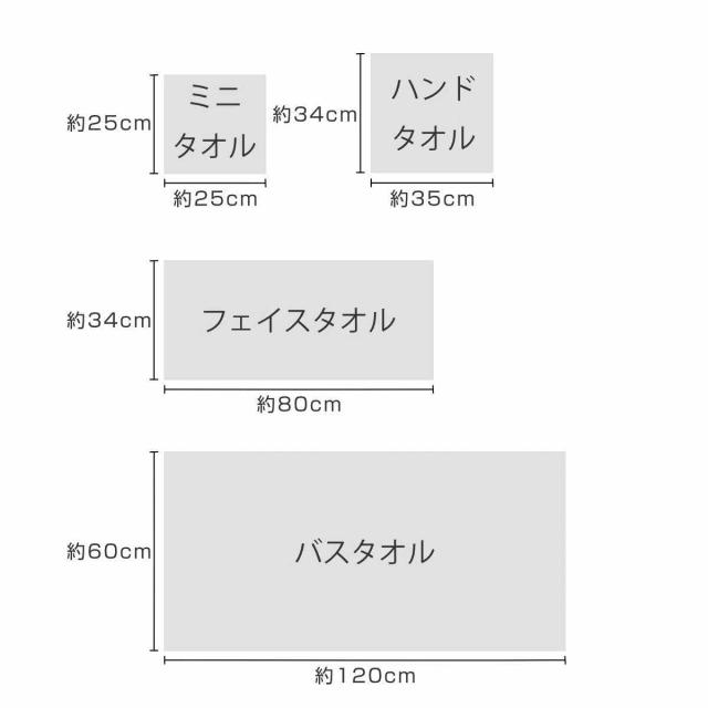 バスタオル、フェイスタオル、ハンドタオル、ミニタオルの4サイズをご用意しています。用途に合わせてお選びいただけます。