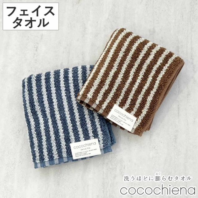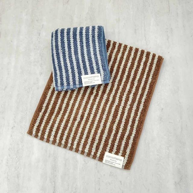 タオル ココチエナ ライン フェイスタオル 34×80cm ( 顔拭きタオル たおる 綿100% 吸水 抗菌 防臭 cocochiena デイリータオル 汗拭き ふんわり 34×80 ストライプ ブラウン ネイビー )