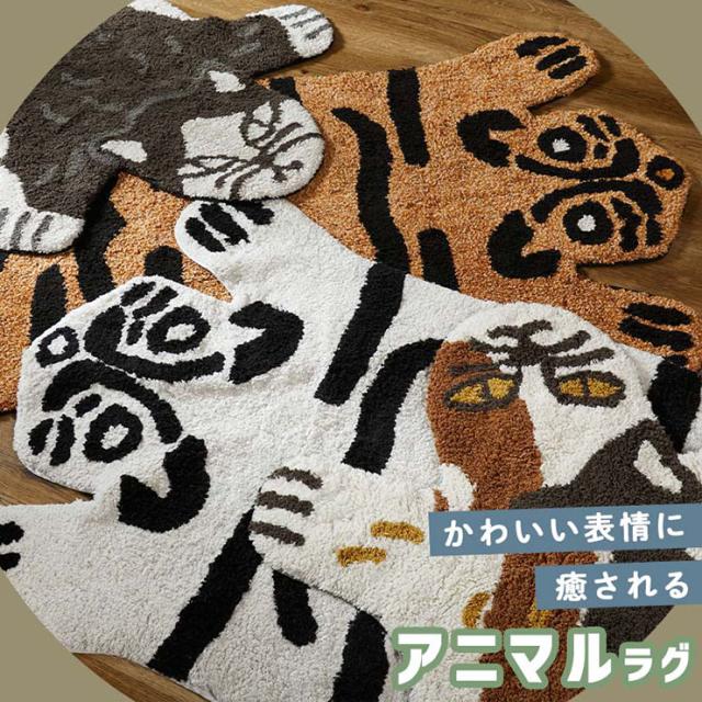 【ホットカーペット/床暖房対応】ラグ ラグマット 90x150cm アニマルマット アミュー 4タイプ対応 カーペット ラグカーペット おしゃれ 動物 猫 虎 絨毯 綿100% リビングラグ オールシーズン 子供部屋