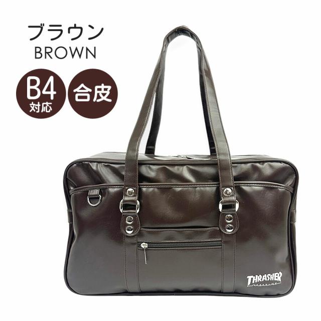 スクールバッグ 合皮 大きめ thb-0061 THRASHER スラッシャー 合皮スクールバッグ 中学生 高校生 学生かばん 通学かばん 通学バッグ スクバ かばん 鞄 女子中学生 女子高生 男子中学生 男子高生 女子 男子 入学準備 入学祝い 通学 A4サイズ B4サイズ