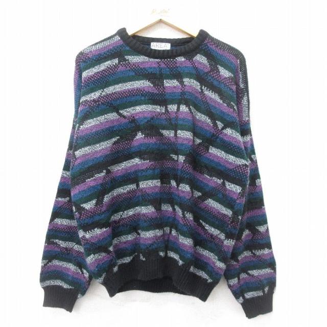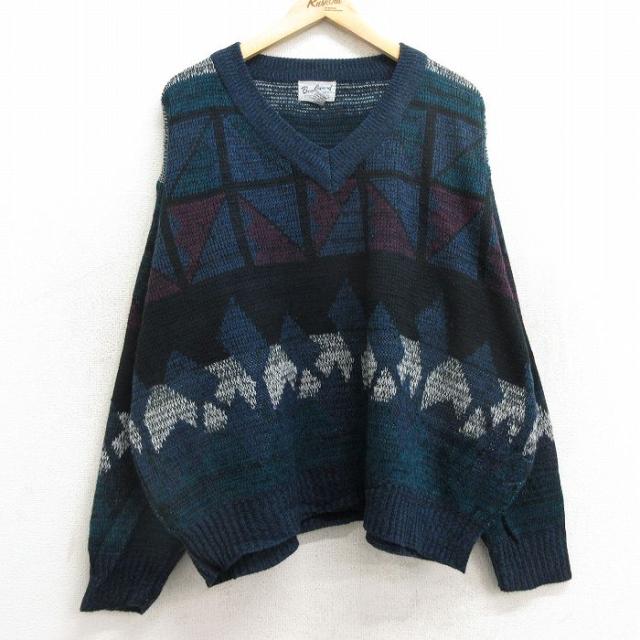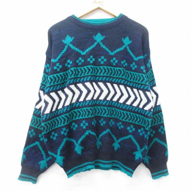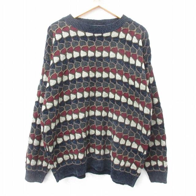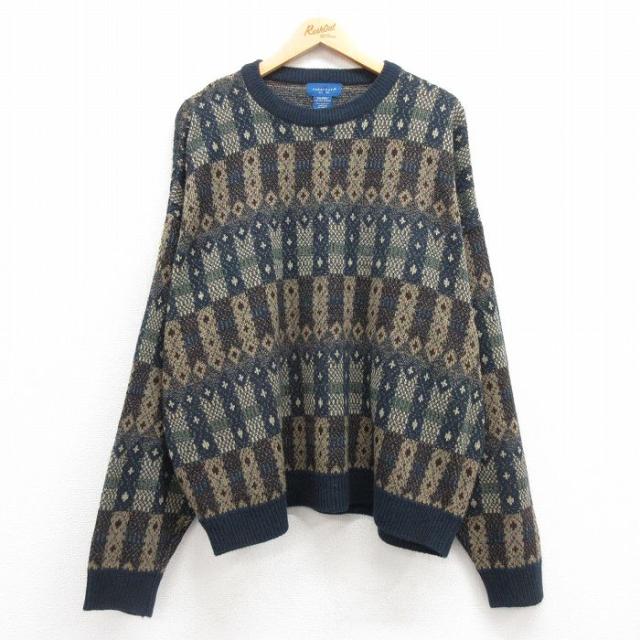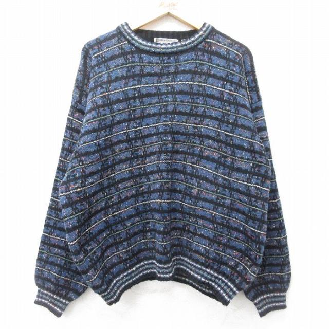古着 マックレガー 長袖 セーター メンズ 90年代 90s 大きいサイズ アクリル クルーネック 紺他 ネイビー XLサイズ 中古 ニッ 中古 古着