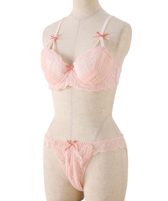 可愛いブラジャーが大好き、実際につけてみたい、そんな願いをかなえるブラジャーです。カップのふくらみも高さが出ないような仕様に変更、ストラップも長めに設定し、メンズ体型にフィットしやすいようにしました。リボンとやさしいカラーがポイントのフェミニンなブラジャーです!