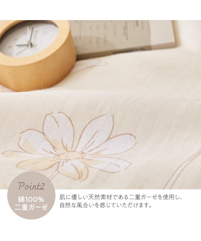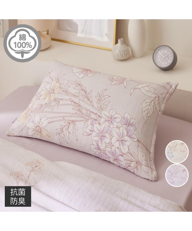 綿100%二重ガーゼ枕カバー(フラワー柄)(抗菌防臭加工)